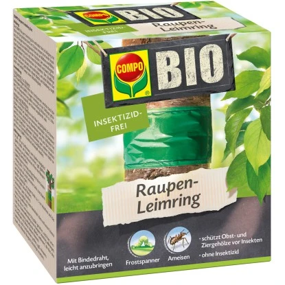 Compo Bio Raupen-Leimring verhindert die Schädigung von Obst- und Ziergehölzen durch am Stamm empor kriechende Insekten, wie z.B. Frostspannerraupen. Der Leimring ist leicht anzubringen, hat zusätzlich einen Bindedraht, tropft nicht und behält lange seine Klebefähigkeit. Insektizidfrei.