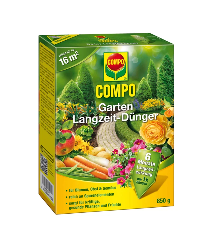 Universell einsetzbarer Langzeit-Dünger mit einem harmonischen Nährstoff-Verhältnis für Gemüse, Obst, Bäume, Sträucher, Stauden und Sommerflor.