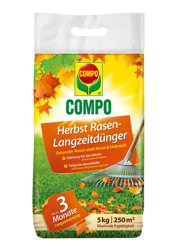 Reich an Kalium für einen strapazierfähigen, winterfesten Rasen. Verbessert die Zellstruktur und die Widerstandskraft. Mit bedarfsgerechter Langzeitversorgung für bis zu 3 Monate. Der Rasen startet so schneller ins Frühjahr und behauptet sich besser gegen Moos und Unkraut. Für die Ausbringung mit dem Streuwagen geeignet.