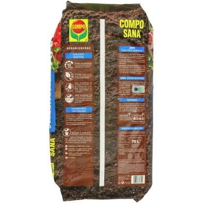 Die Compo Sana Geranienerde ist ein Kultursubstrat. Die hochwertige Spezialerde eignet sich für Geranien und stark zehrende Pflanzen auf Balkon und Terrasse. Das, auf die Bedürfnisse der Pflanzen, abgestimmte Dünger-Depot wirkt sofort und gewährleistet eine bis zu 8 Wochen optimale Nährstoffversorgung. Perlite Atmungsflocken und Compo Plus Gärtner-Humus sorgen für eine lockere, luftige Struktur des Substrates und die Bildung lang anhaltender Blüten.